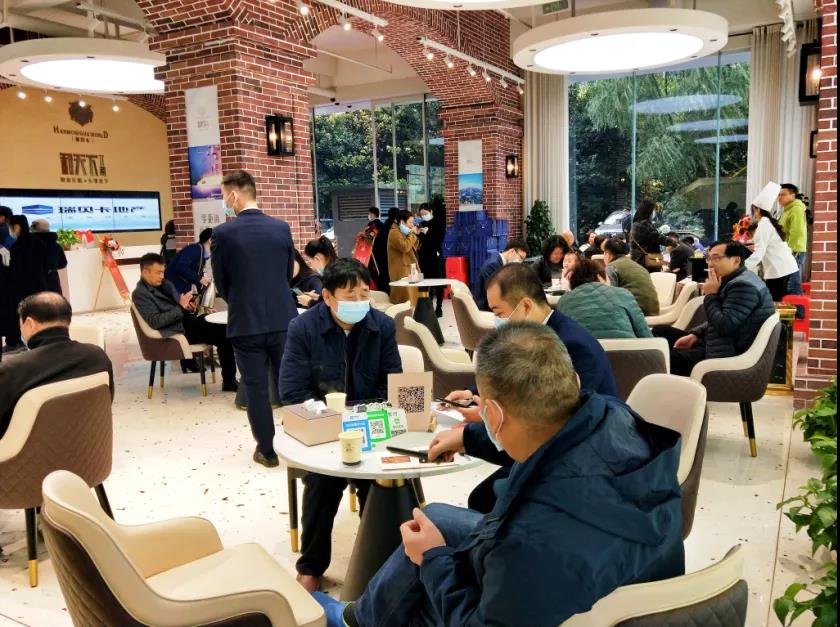 早上08:00,室外氣溫驟降,寒風攜帶細雨,和天下展廳內(nèi)鮮花簇擁、賓客滿座,寒冷的天氣并未阻擋瑞貝卡客戶翹首以盼的熱情。簽到區(qū)、休息區(qū)、沙盤區(qū)人聲鼎沸,氣氛火熱。